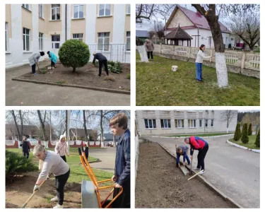 Дружной толокой: педагоги и дети вместе наводили порядок у Дворца творчества детей и молодёжи Щучина