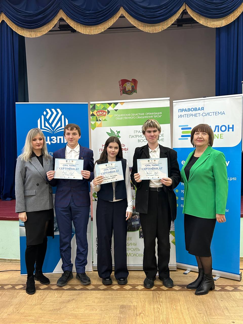 27 ноября в Гродненском университете им.Я.Купалы проходил областной правовой турнир "Сила закона". Слонимский район достойно представил учащийся 11 класса Булыга Роман.