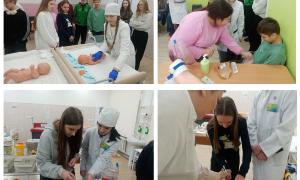 Ребята также попробовали выполнить простые медицинские манипуляции, что позволило им почувствовать себя в роли будущих специалистов.