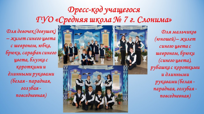 Деловой стиль одежды – это строгий выдержанный стиль одежды, предназначенный для посещения учащимися учебных занятий в учреждениях образования. Комплект одежды делового стиля должен быть многофункциональным, гигиеничным, удобным и соответствовать современным направлениям моды. Обувь также должна соответствовать деловому стилю одежды.