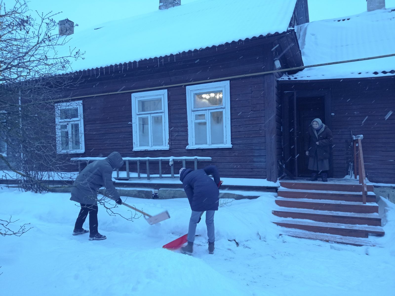 Педагогический коллектив очистил придомовые территории ветеранам педагогического труда, ветерану Великой Отечественной войны.