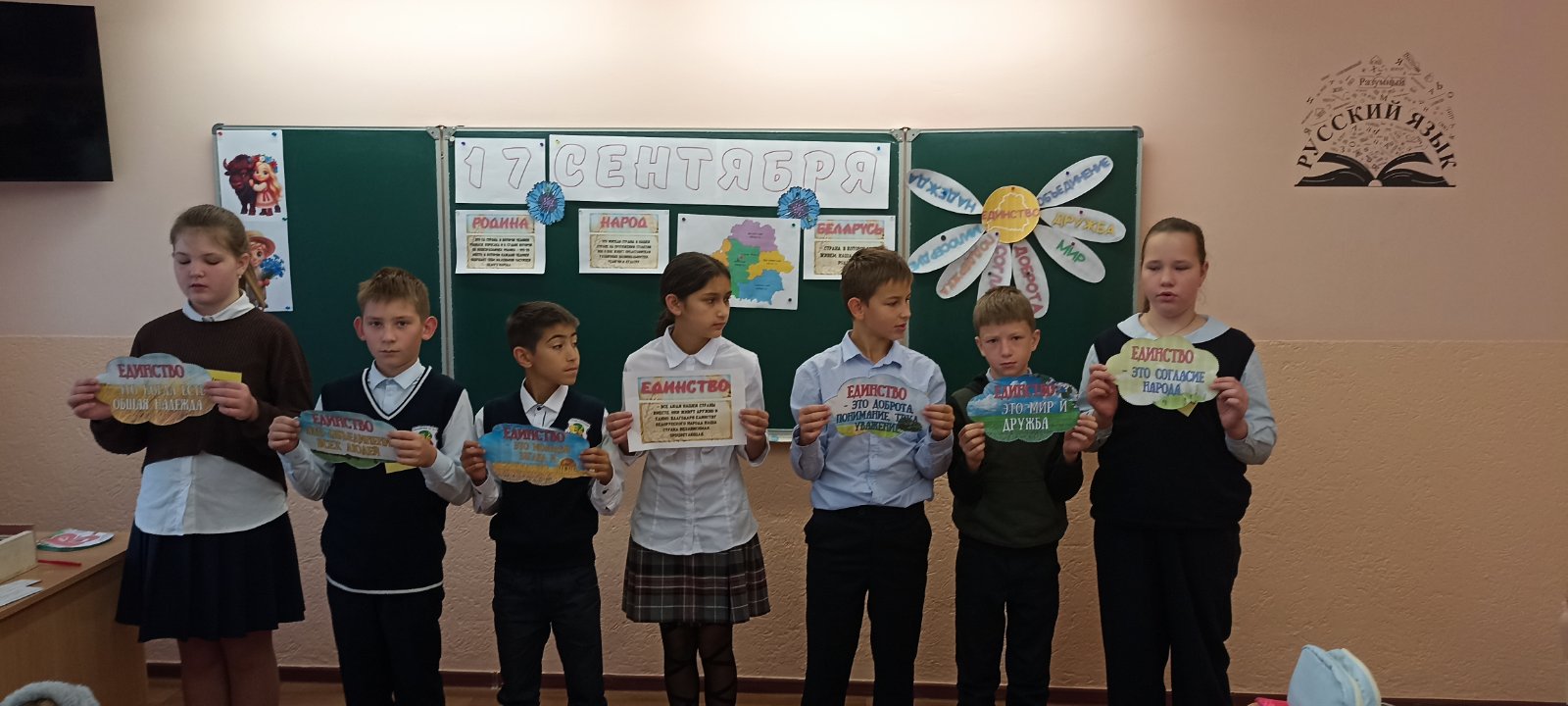 С целью воспитания у учащихся гражданственности, патриотизма, формирования уважительного отношения к историческому прошлому нашей страны 17 сентября в 5 "А" классе прошл единый урок, посвящённый Дню народного единства.