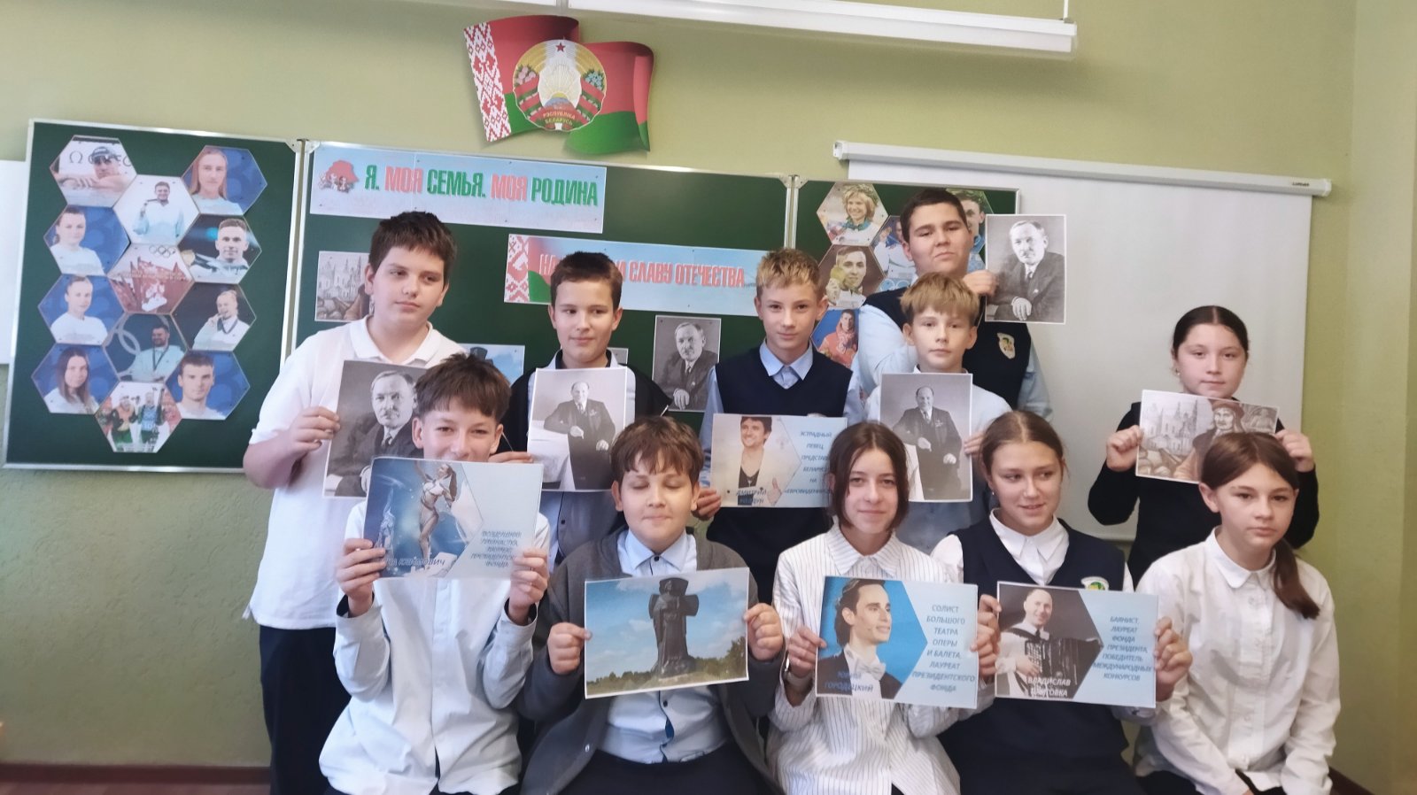 В форме интерактивной викторины по теме «На пользу и славу Отечества» учащиеся возобновили в памяти имена выдающихся белорусов нашего времени: героев спорта, мастеров культуры и общественных деятелей Беларуси, которые своим талантом и трудолюбием, активной гражданской позицией и духовной силой укрепляют авторитет страны на мировой арене, вносят значительный вклад в историю современной Беларуси, а также достойными примерами для подражания вдохновляют молодежь.